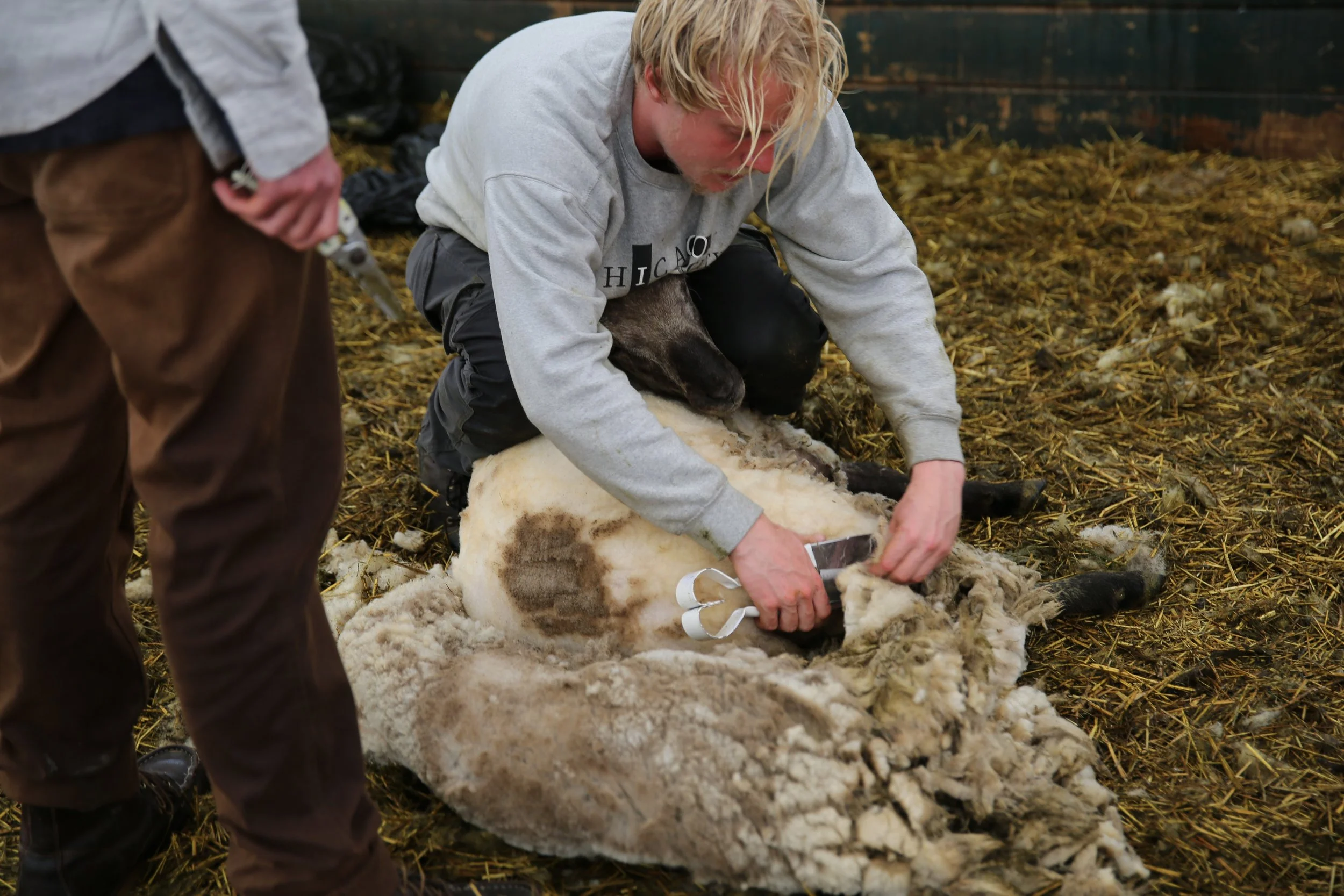 Our shepherd Philip shearing our sheep on a rainy spring day!