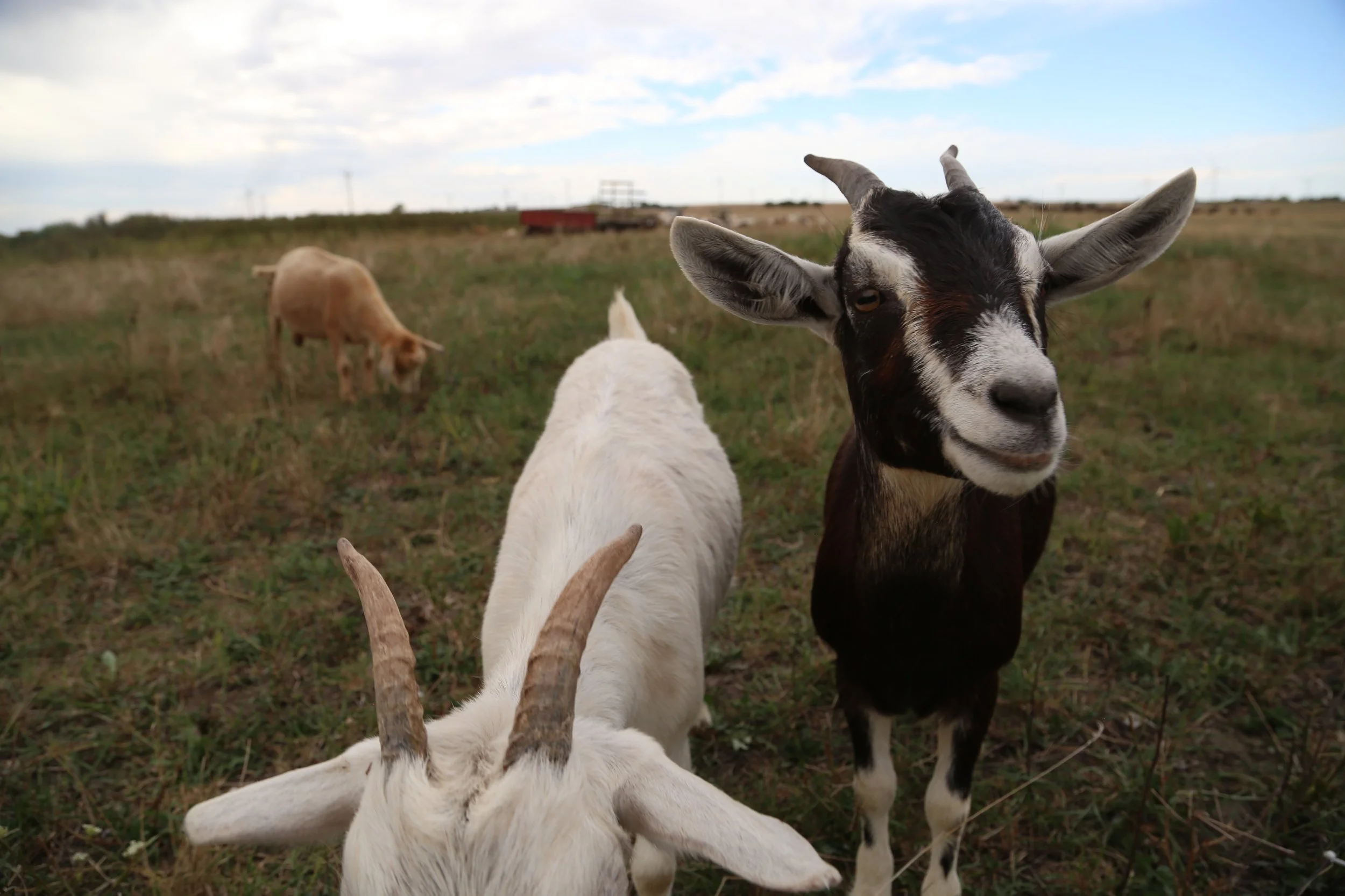 Our goats are grass-fed from birth on 220 acres of certified-organic perennial pasture. They also receive Certified-Organic, fermented soy fiber as a probiotic/prebiotic supplement (produced locally & artisanally by Phoenix Bean Tofu) as well a mineral supplement to ensure a healthy balance to their diet, resulting in nutrient dense meat. Goats are “browsers” requiring more coarse plants, shrubs, & bark. on the often treeless, open prairie type terrain of Mint Creek, organic oats or rye in the hull sometimes help fill that dietary role of course plants in the goats’ diets, supplementing their pasture forage.